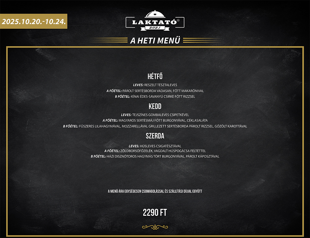 Aktuális napra vonatkozó rendelés leadása előző nap 12:00-ig!
